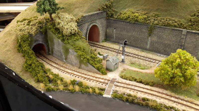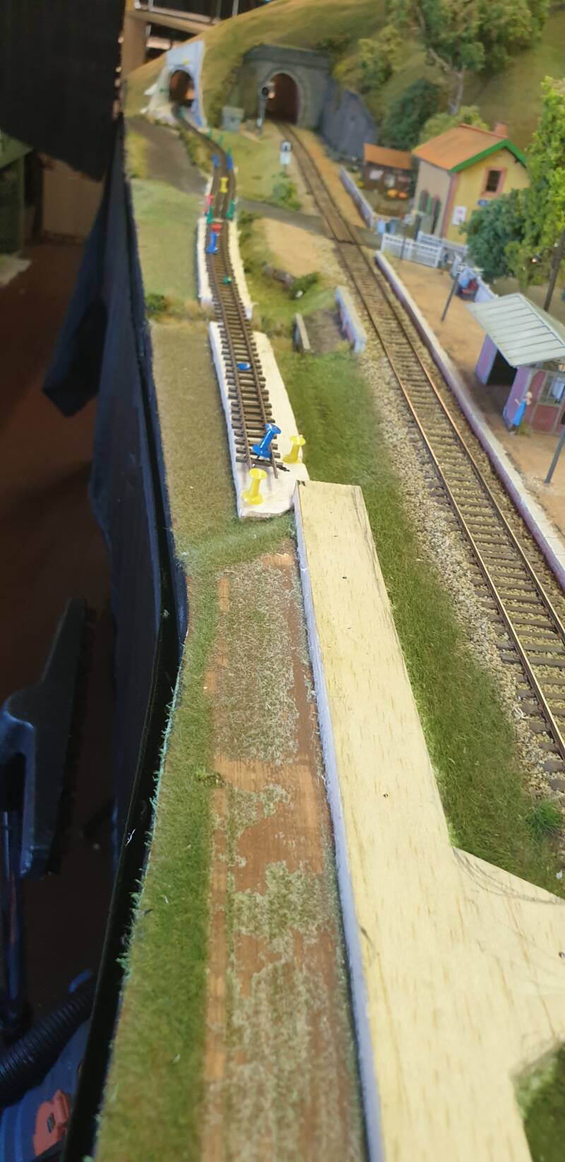Comme nous n’avions pas assez de travail, nous avons décidé de nous en rajouter un peu !! Du HOm au club liberty-Rail Après avoir craqué sur des autorails Billards, il a fallu bien sûr que l’on puisse les faire rouler en situation sur notre réseau fixe !! La création d’une voie métrique était donc indispensable ! Après quelques réflexions sur son implantation, nous avons dû percer un tunnel dans la colline, raboter la déco pour la plateforme, modifier la route pour le passage de la voie, créer un pont pour enjamber la rivière, créer également d’un petit quai terminus en correspondance avec notre halte du Rouloir sur la voie unique, elle à écartement normal. Un peu de ballast, de déco, de colle, de patience, de soudure à l’étain et le tour est joué !! Cette voie est pilotée par la commande générale du réseau RRTC. Chouette les billards vont rouler !!!!!